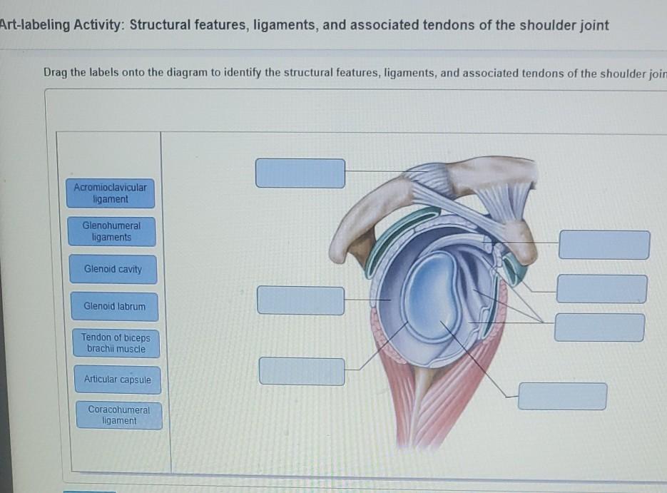 The shoulder joint part a drag the labels onto the diagram to identify the structures and ligaments of the shoulder joint.